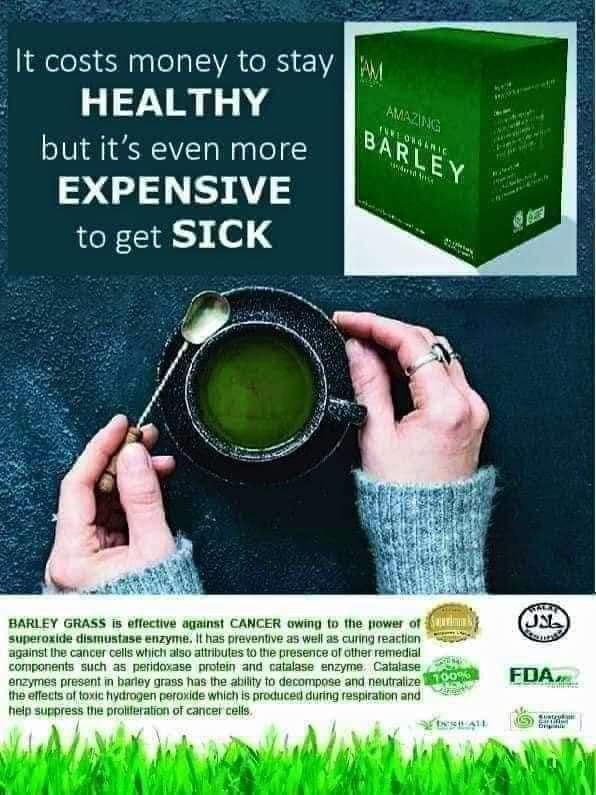Amazing Pure Organic Barley is a health food supplement that contains the extract juice of young barley leaves. It is imported from Australia and comes in both powdered juice and capsules forms. They young barley leaves are harvested and powdered when they reach the height of 20cm-30cm, before the ovule begins to move up and the grain develops. It is at this crucial stage that the barley has its highest nutritional profile which is essential to the efficient running of the human body.Amazing Pure Organic Barley contains every vitamin except vitamin D, most minerals (specially Calcium) essential and non-essential amino acids are available in their natural easily absorbable forms.Nineteen amino acids are in Amazing Pure Organic Barley including all eight of the essential amino acids. Amino acids are the building block of proteins, which are essential for continual cell building and regeneration, as well as energy production, immune function and detoxification. Amazing Pure Organic Barley is actually 20% protein, which is approximately the same amount of protein found in the same quantity of lean beef.Amazing Pure Organic Barley also contains a number of living enzymes and flavonoids that function as potent free radical scavengers. These compounds make Amazing Pure Organic Barley a great nutritional supplement that provides antioxidants and anti-inflammatory nutrients. Studies verify that it is very beneficial nutrition, it is great for many health problems including gastric ulcers, high cholesterol levels, some cancers and many other diseases.